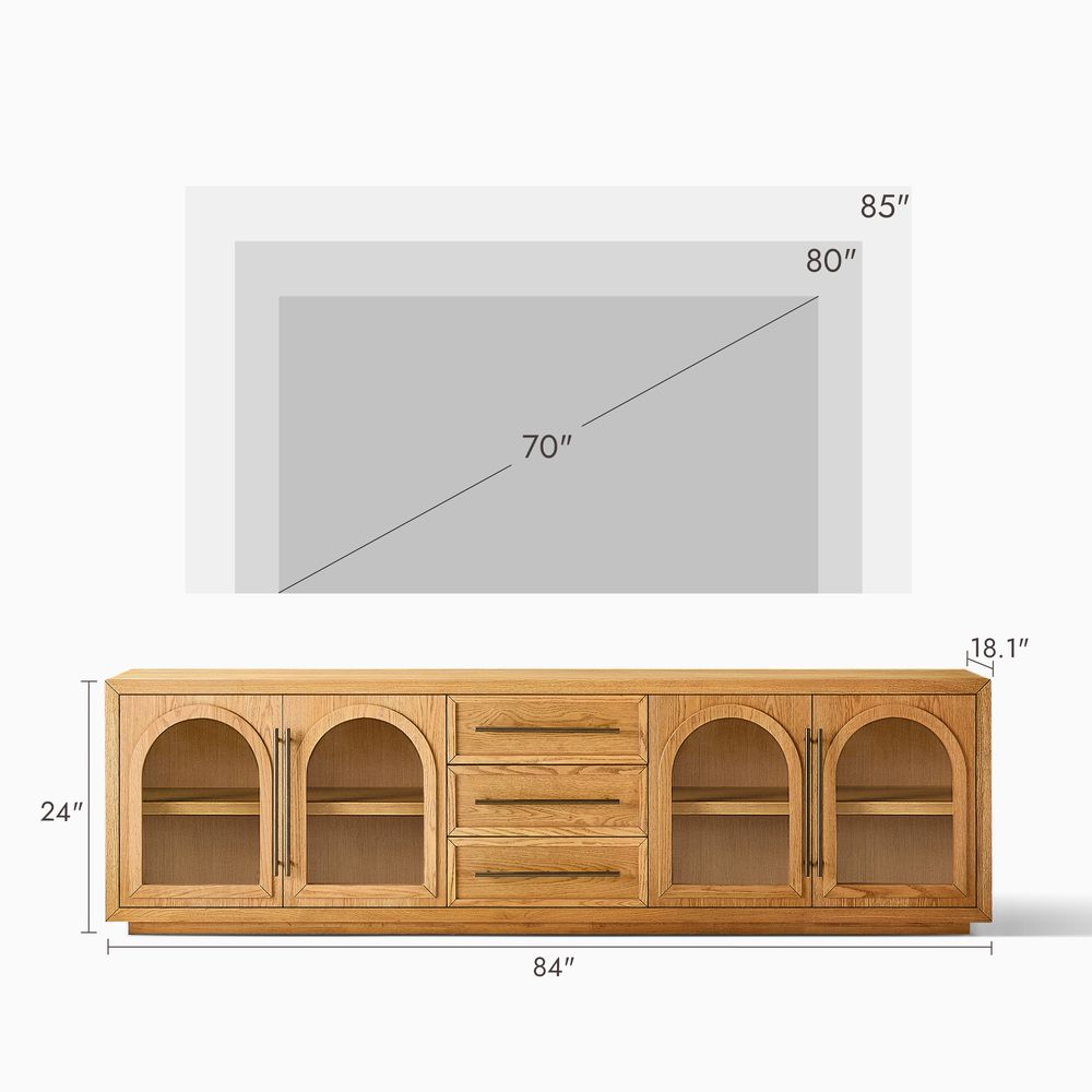 • Accommodates 80" TVs: Generous 84-inch width perfectly supports large flat-screen televisions.
