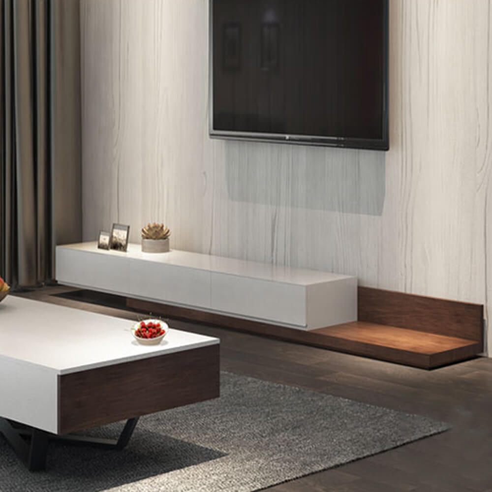 78 Modern White Retractable Wooden TV Stand with 3 Drawers