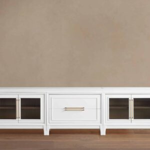 This rowan reeded glass media console with drawers looks incredible under our 65-inch TV. The wood grain matches our existing decor perfectly.