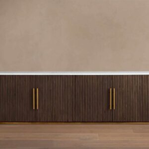 I am completely obsessed with this console. The fluted details are so on trend right now. Shipping was great, no missing parts, and the wood tone is just gorgeous in person (not too orange).