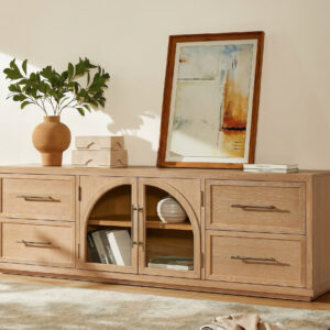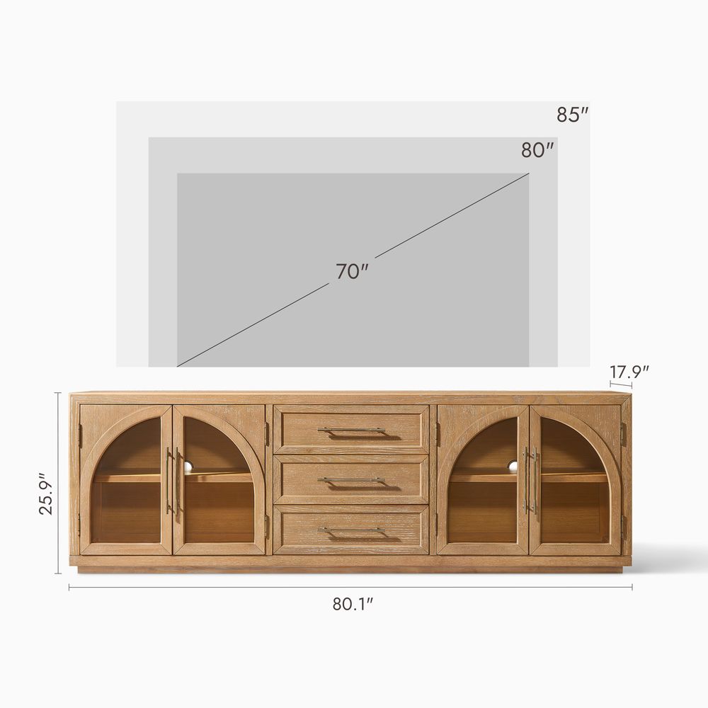 Arched Solid Oak Media Console, with Living Room Storage - Ormau Valborg